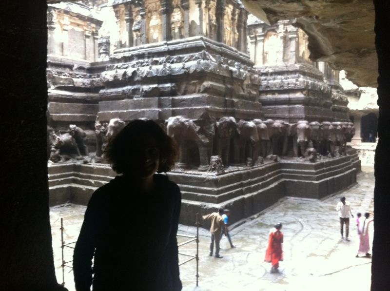 Impresiona ver cómo se mantienen en pie las cuevas, algunas con más de 13 siglos de antigüedad. Budistas, hindúes y jainistas. Piedra, piedra y más piedra. Esculturas, relieves, estancias con columnas. Numerosos murales de estuco con pinturas, en los techos y paredes, de personas danzando, besándose… Algunas esculturas muy impúdicas para la mente occidental, muestran parejas copulando en honor al dios shiva. El tantra.