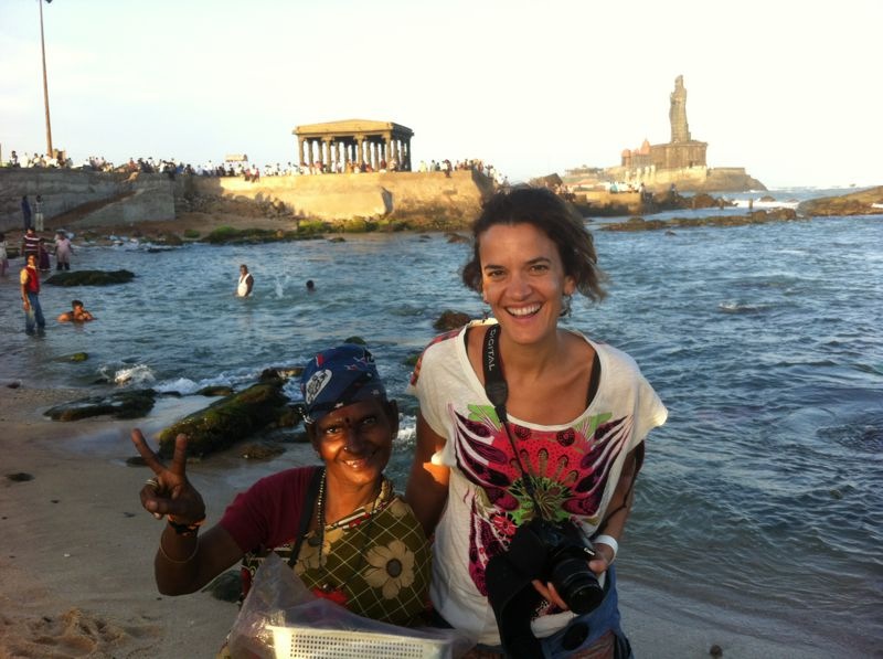 Ayer viajamos en avión hasta Trivandrum, y de ahí cogimos un coche con conductor que nos llevó al pico más meridional de India, el Cabo Comorín, donde el mar Arábigo y el Océano Indico se dan la mano.