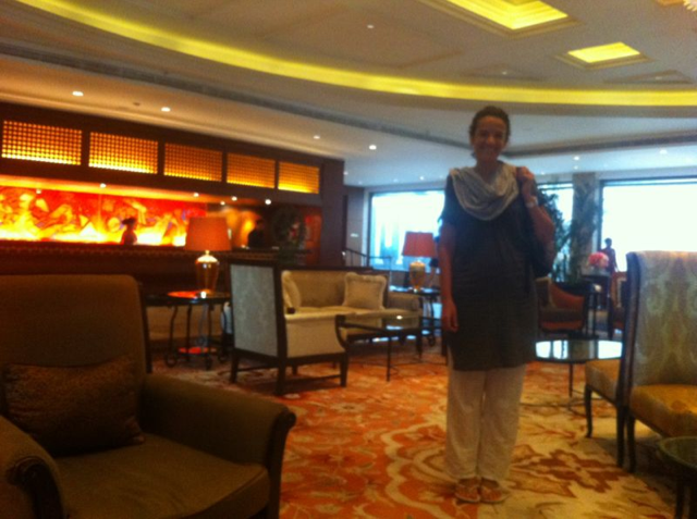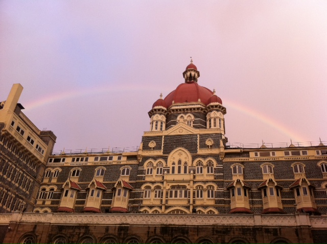 El hotel Taj Majal es probablemente el mejor sitio para alojarse en Bombay. Un hotel cargadísimo de historia, toda una institución que ha visto pasar por sus hermosos salones y galerías a emperadores, reyes de todo el mundo, diplomáticos, intelectuales, artistas, estrellas míticas de cine … Sus paredes están cargadas de fotos de personalidades del S XX. Un lujazo que nos pudimos permitir gracias a la habilidad de Nan para encontrar, con tiempo, buenas gangas hoteleras. Eso sí, nuestra entrada fue triunfal: tras una noche en tren nocturno, llegamos muy temprano (había que aprovechar esta joya de hotel al máximo!) y no hubo tiempo ni ocasión para cambiarse, así que allí que me planté yo en la recepción en pijama!! Jaja! Hotelaco de cinco estrellas, y yo con mis pantalones pijameros y mi camisón, disfrazando mi atuendo con un fular al estilo hindú… Con dos cojones! Y es que, aunque parezca increíble, en ninguna estación india es fácil encontrar un lugar lo suficientemente limpio para dejar la mochila, abrirla, sacar la ropa…
