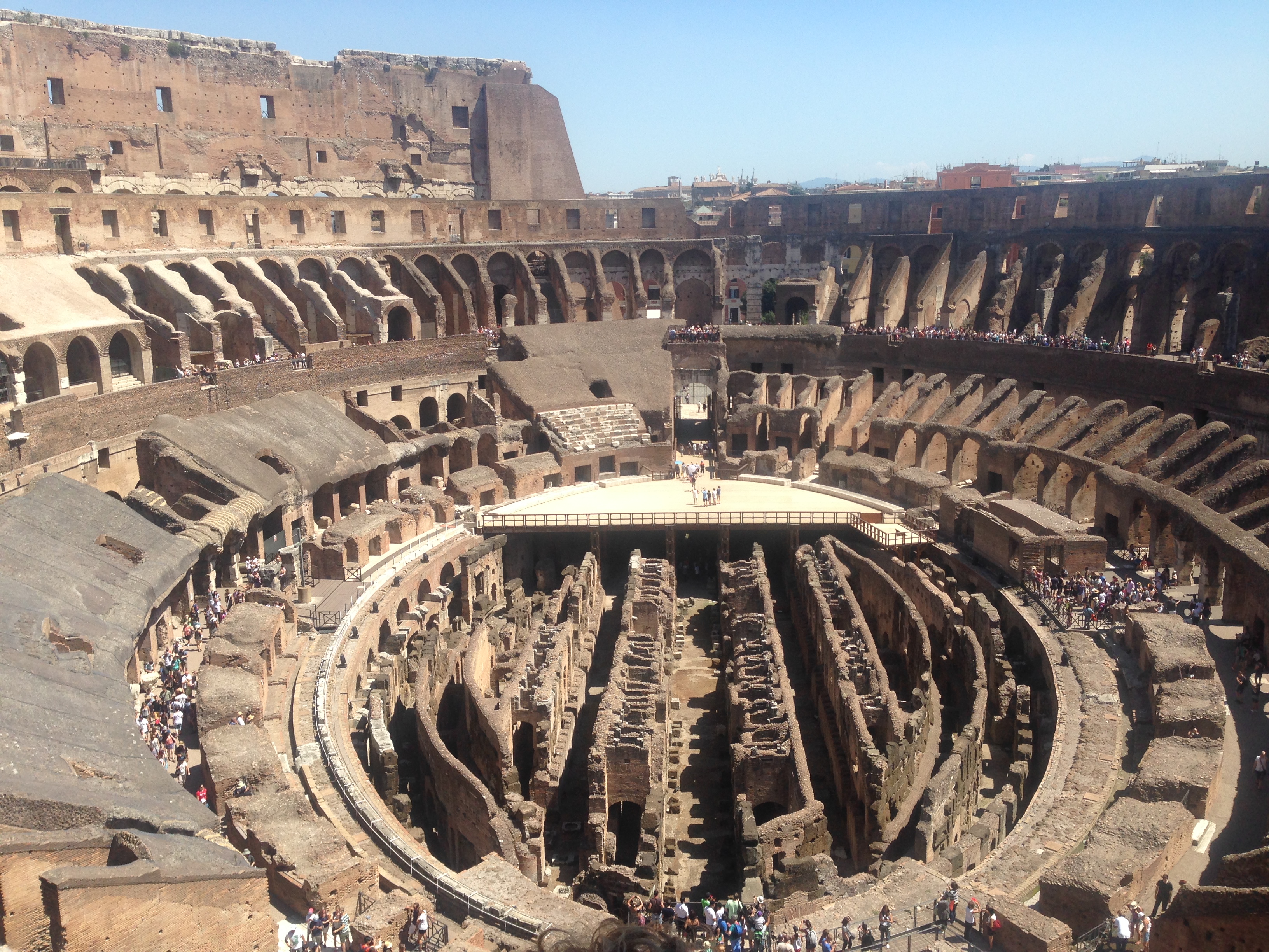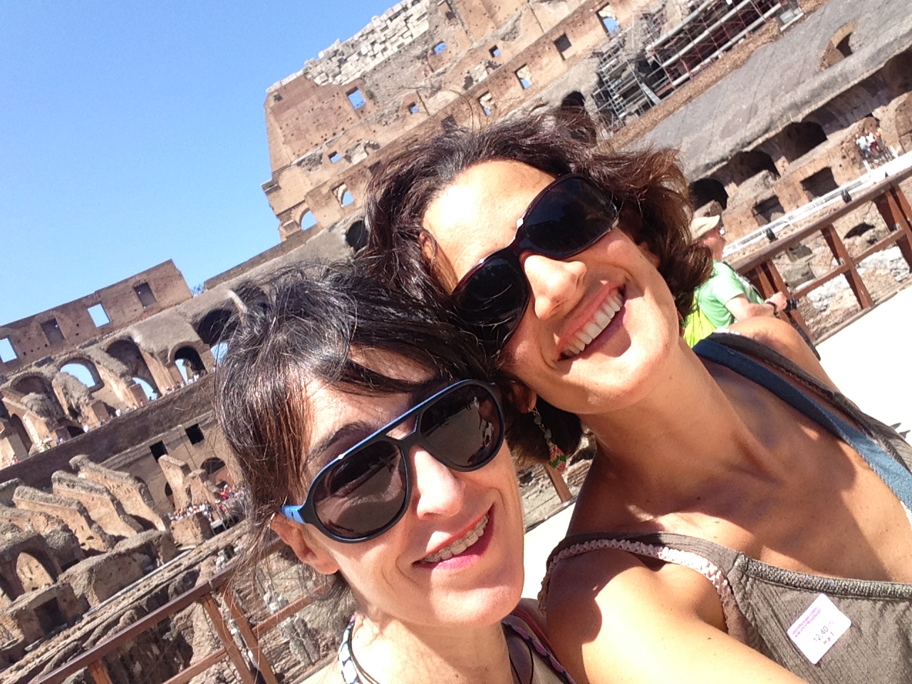 Visita al Coliseo. Abrumadora la cantidad de gente, todos los que estaban ayer en la Fontana de Trevi se han venido hoy aquí con sus familiares y amigos. Ha hecho un calor de morirse, pero bueno, esto es Roma en agosto. Cómo tenían que estar los romanos en los juegos, ahí con sus hornillas haciéndose la comida entre espectáculo de lucha de animales y otro de gladiadores. Aunque cuesta trabajo sumergirse en la magia del túnel del tiempo, cuando ni siquiera puedes hacer una foto sin que salgan 4 notas por detrás… Pero lo intentamos. Aquí se llegaron a sacrificar 10.000 animales en unos juegos que duraron 107 días en la época de nuestro paisano el emperador Trajano. Pobres animales. Discutíamos Raquel y yo sobre la procedencia de las bestias. Ella piensa que seguramente provengan de cría. Yo opino que se cazarían fácilmente en tierras conquistadas y se venderían al imperio. Toda una industria comercial entorno a los sádicos juegos. Alguna aportación al respecto?