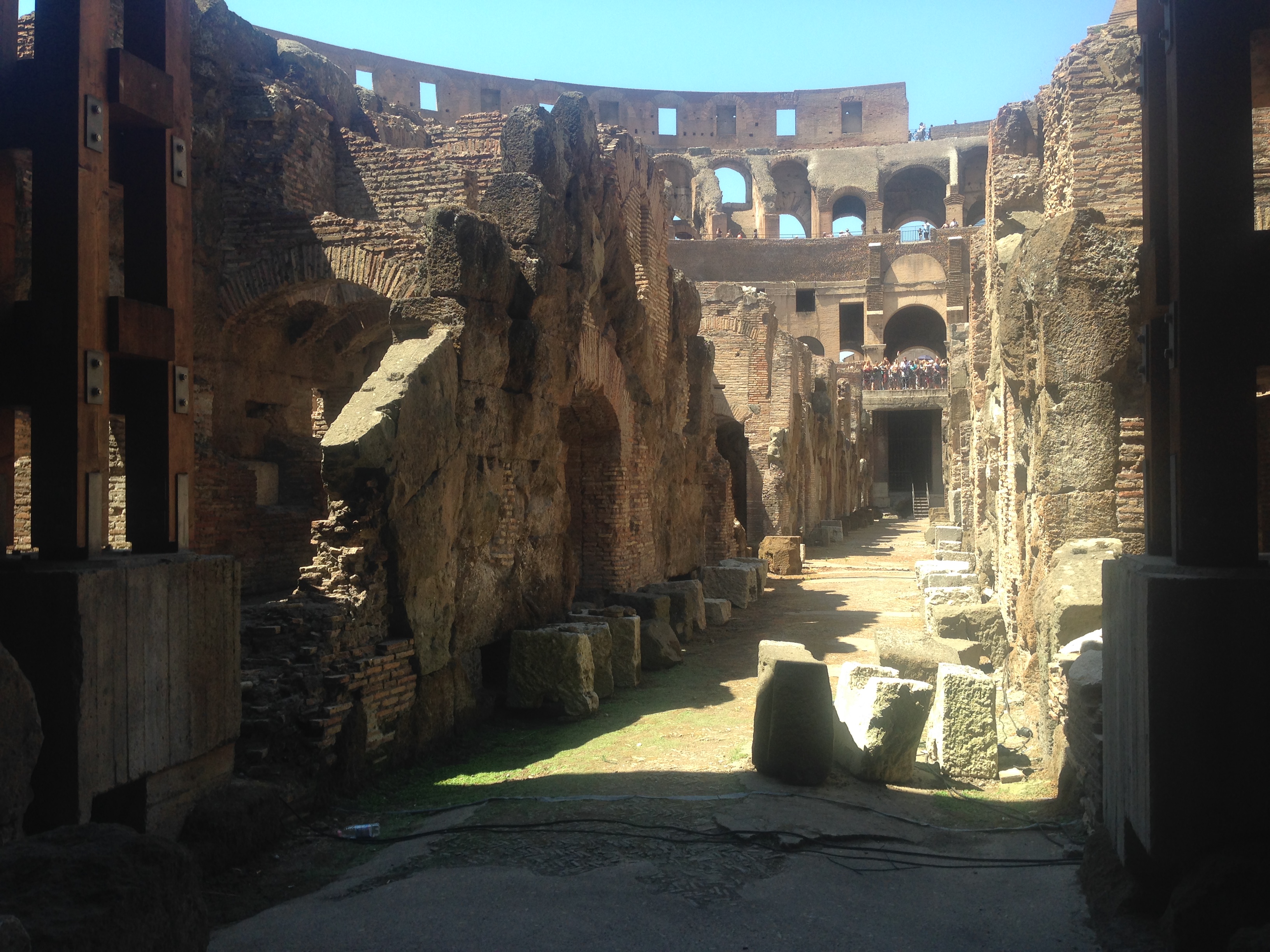 La visita en italiano fue muy interesante, pero cuando nos cruzamos con el grupo de españoles que subía del hipogeo, nos confundimos entre la gente e hicimos un pequeño trueque de grupo. Las guías van las pobres tan overbooking que ni se coscan, y para nosotras, que nos expliquen el sistema de cisternas, de elevadores para los animales, y de cómo se organizaban en sus celdas los gladiadores y los esclavos, en nuestro idioma materno, pues mejor, claro.