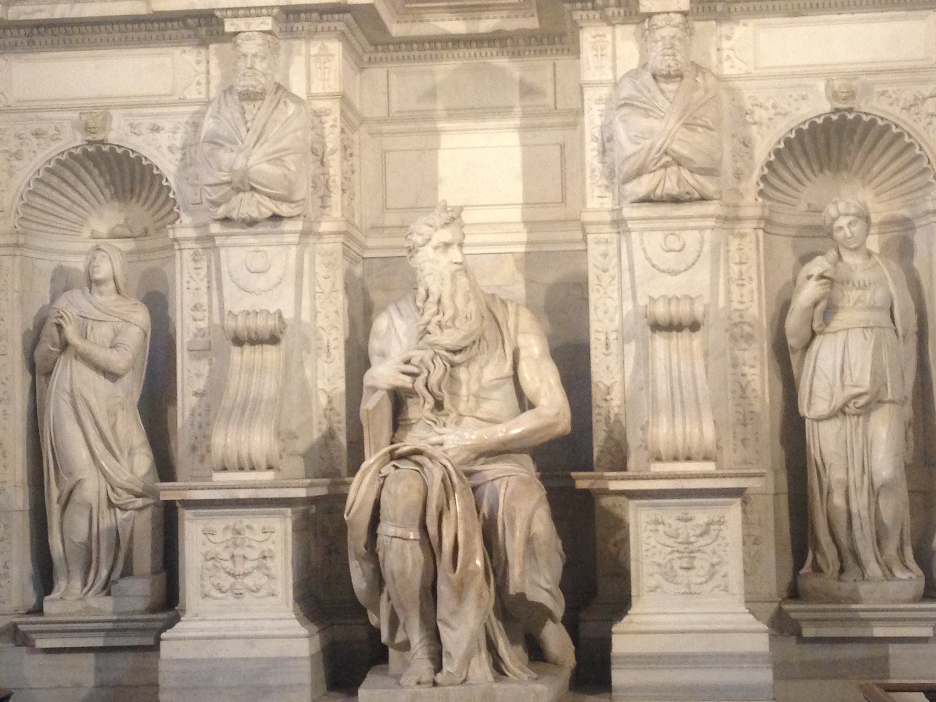 Tras una parada para comer en el Ristorante Cleto, cerquita del Coliseo, Via del Buon Consiglio, debemos visitar una de las obras cumbres de Miguel Angel, El Moisés. Una belleza de bloque marmóreo imponente. Por la tarde hemos ido a dar un precioso paseo por el Trastévere. Cruzamos el río Tiber, por el puente más alejado de la isla Tiberina, vimos pájaros sobrevolando el agua y el verdor. Veníamos de ver la boca de la verita, que es algo … poca cosa. Estaba cerrada la verja, claro. Había unos cuantos turistas haciendo fotos. Enfilamos la calle principal del Trastévere, visitamos por supuesto Santa María in Trastevere, una de las iglesias más bellas de Roma, a mi parecer, por dentro y por fuera. Y encontramos, como de casualidad (ah, no, que venía recomendado en la guía…), un bar estupendo para tomar un (o unos) Spritz, Bar San Calisto, en Piazza di San Calisto, 4. Ahh, qué buen rato hemos echado allí. Pocos sitios tan cercanos como ese hemos encontrado. Es la otra Roma, más amable.