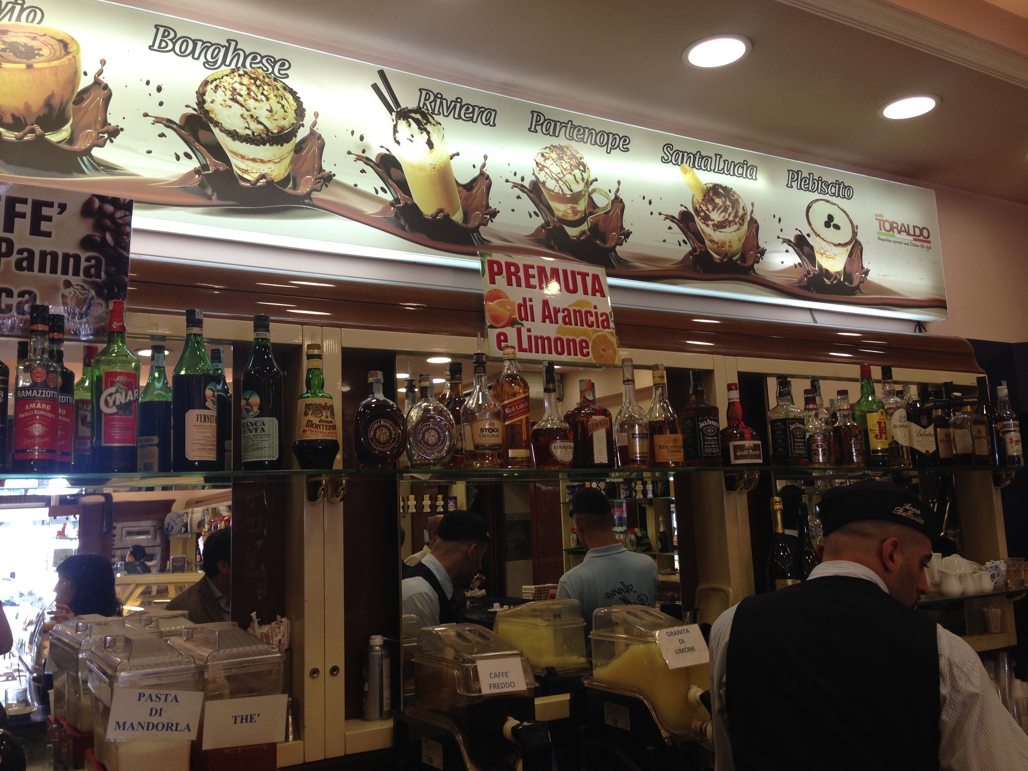 La gastronomía es en Nápoles mucho más apetitosa y asequible que en Roma. Aquí hay puestos callejeros por todos lados donde te ponen unas pizzas al taglio de chuparte los dedos. También el café es de una calidad excepcional. Los desayunos por fin no pasan de 4 €. La fruta, los cítricos, ¡buenísimos!
