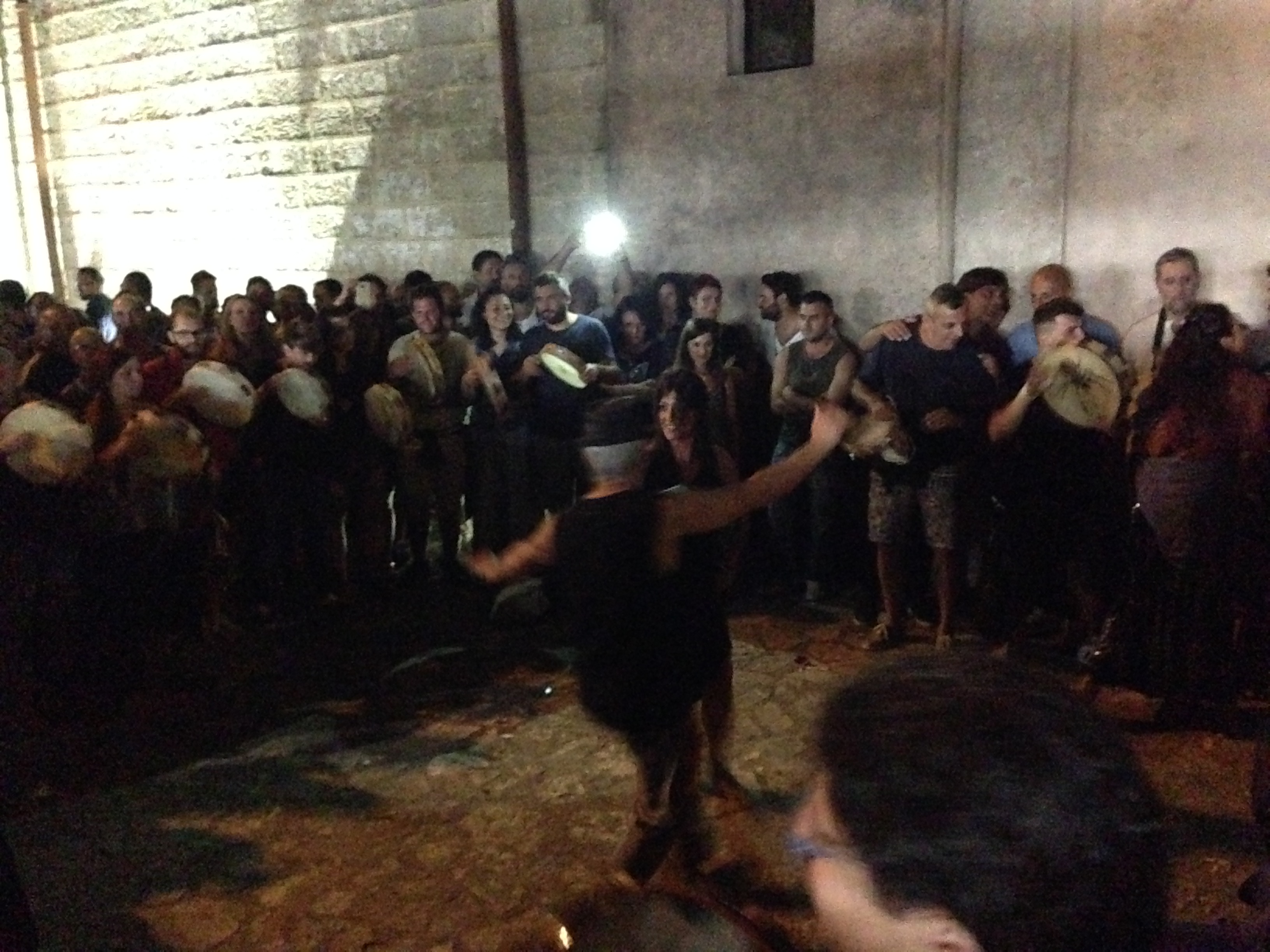 Por la noche fuimos a Lecce y asistimos al concierto del Taranto, que promueve la cultura de la tarantela y la pizzica, un tipo de baile y cante que surgió hace unos 60 años a raíz de las picaduras de araña que atacaban a las mujeres campesinas mientras recogían el grano de trigo. Hacían este baile espasmódico mientras los hombres tocaban la pandereta y hacían cánticos, y como si fuera un exorcismo, supuestamente el veneno de la araña iba saliendo de su cuerpo a medida que la mujer se iba moviendo. Más tarde fue evolucionando y se convirtió en un baile de seducción entre la mujer, y el hombre que trata de conquistarla. No me ha quedado claro, eso sí, qué lugar ocupa en toda esta historia la pizzica. ¿Vendrá también de las picaduras? ¿Y el baile que hacen los hombres, tipo capoeira, qué tendrá que ver con las arañas?? Traté de averiguarlo varias veces, pero fracasé en el intento. En cualquier caso, aquí debe de haber escuelas que enseñan estas danzas, porque en Lecce las parejas que bailaban por la calle, en corrillos, espontáneos, estaban muy coordinadas. Me recordó al tango, un baile muy ensayado que requiere un grado de técnica, pero que también tiene un alto componente de improvisación y frescura. Los músicos con panderetas, violines, incluso un acordeón y cánticos, acompañaban a los bailarines, que iban saliendo por parejas, de forma espontánea, cuando se hubo acabado el concierto «oficial», para dar paso a la noche de la taranta. Esta noche volveremos a visitar otro similar en otro pueblo, qué suerte tenemos!