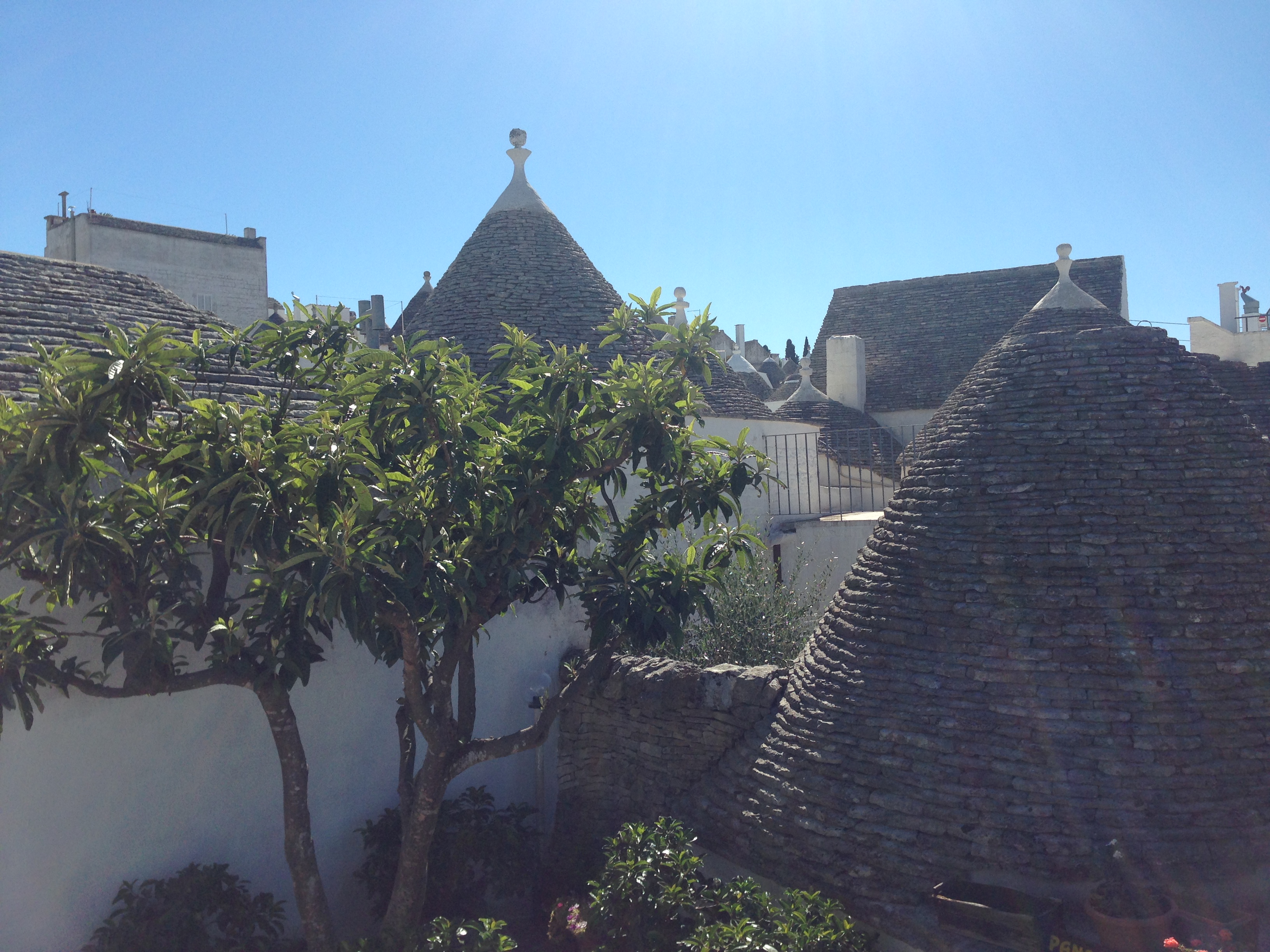 Esta zona de Puglia es bellísima. Llegamos ayer atravesando campos de olivos y salinas junto a la costa. Antes visitamos Alberobello, el pueblo trulli, que tiene unas construcciones típicas de aquí , los trulli, cilíndricas en su base y con tejado de cono, que recuerdan las casas de los pitufos. Pero lo más remarcable es el paisaje de suaves colinas y campos frutales de los alrededores. Y un tiempo buenísimo.